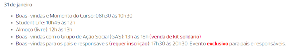 - Boas-vindas, Momento do Curso e Student Life (8h30-12h):